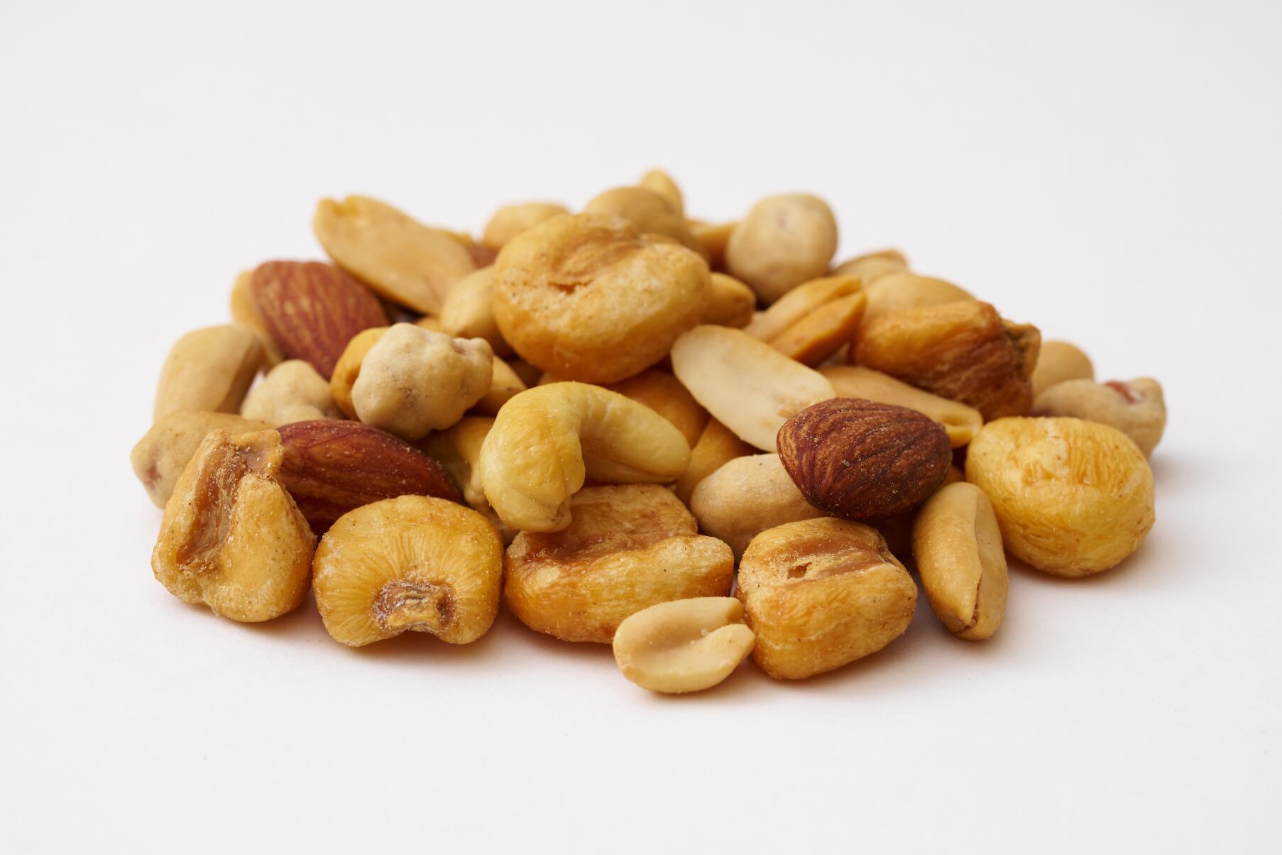 ●原材料名:バタピーナッツ(中国加工)、落花生加工品(中国加工)、ジャイアントコーン加工品(ペルー加工)、アーモンド(アメリカ産)、カシューナッツ(インド、ベトナム産)、食塩/調味料(アミノ酸等)、(一部に小麦・落花生・アーモンド・カシューナッツを含む)