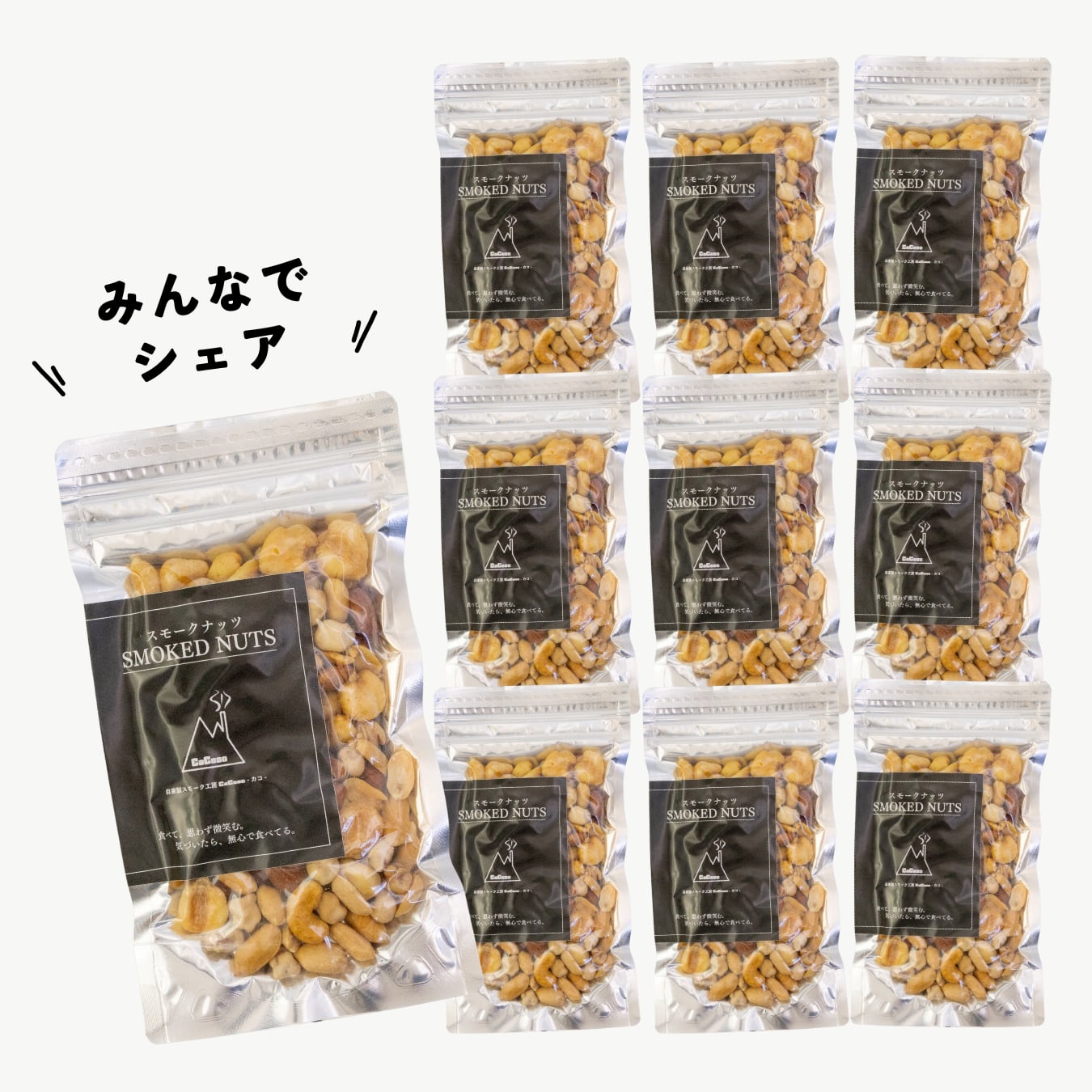 こちらは、濃香スモークナッツ(100g)×10袋のお得なまとめ買いセットです。