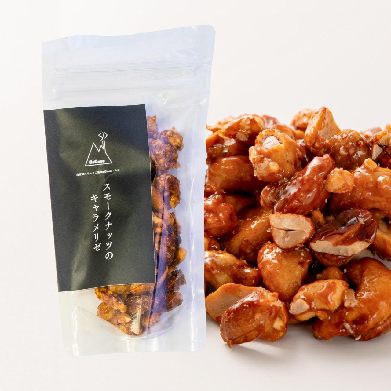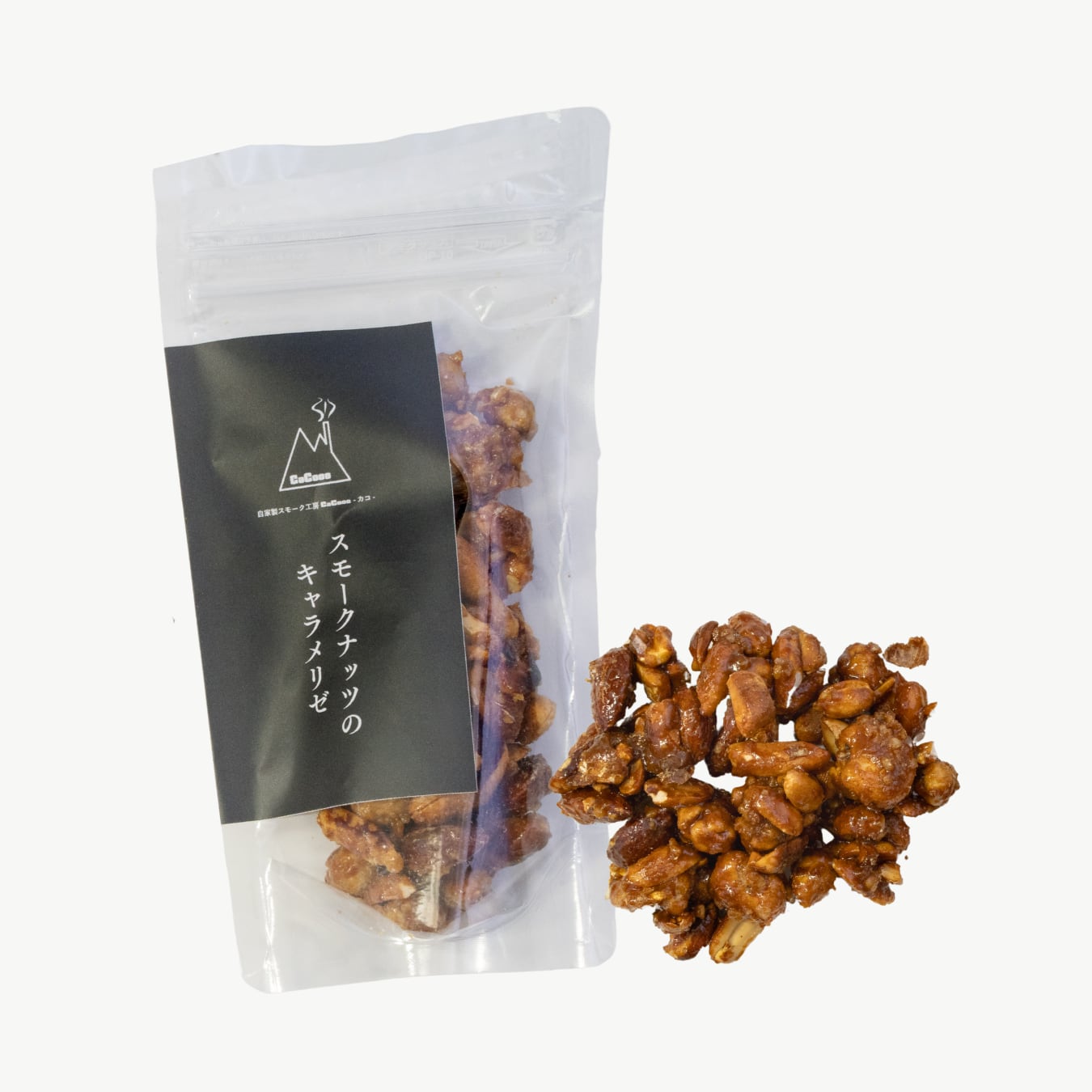 CaCoooの人気商品「濃香スモークナッツ」をキャラメリゼにした、少し珍しい燻製スイーツです。